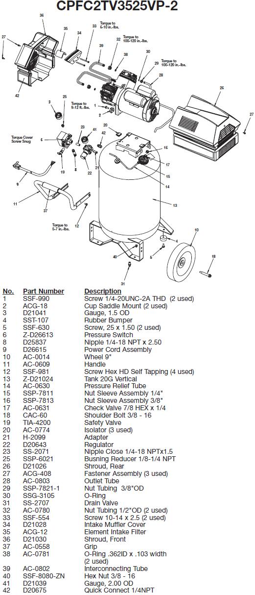 LINK To Devilbiss CPFC2TV3525VP-2 Compressor/Pump Breakdown